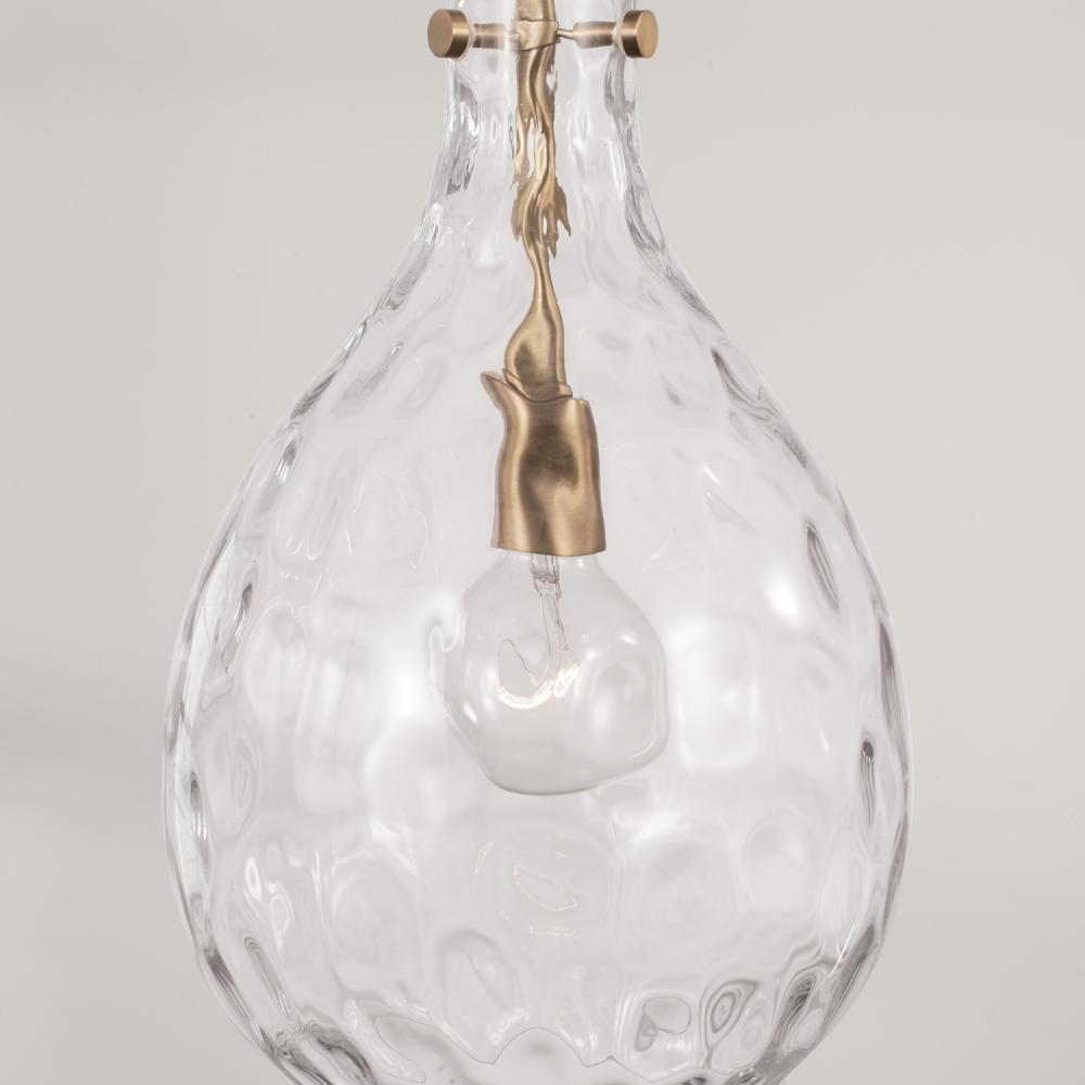 9.75"W x 18"H 1-Light Pendant in Aged Brass with Clear Teardrop Water Glass