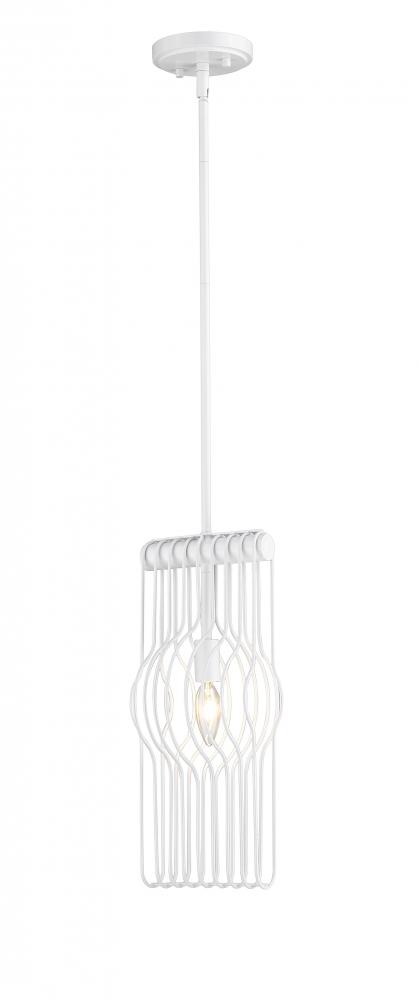 Doubling down on ultra-modern style, this single-light mini-pendant light becomes a focal point in a contemporary nook or reading space. Careful detailing yields a slick linear design of white finish steel rods and a glossy white finish frame. A charming candelabra bulb mount delivers a softening effect with pure style.