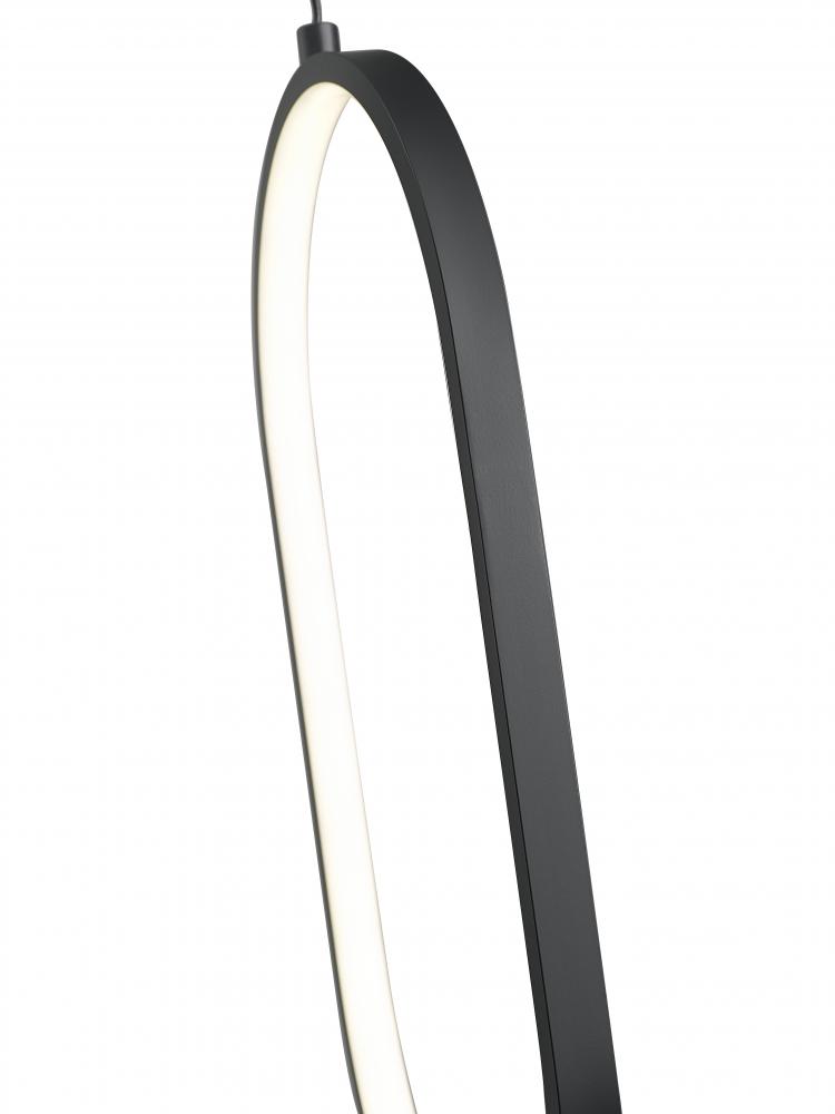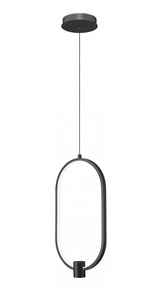 Creating a refined silhouette, this charming LED pendant offers an updated design with a geometric oval silhouette. Matte black aluminum fashions a sophisticated and yet playful look with open metalwork offering an airy feel. LED lighting is dimmable, adding the pleasure of variable illumination levels.