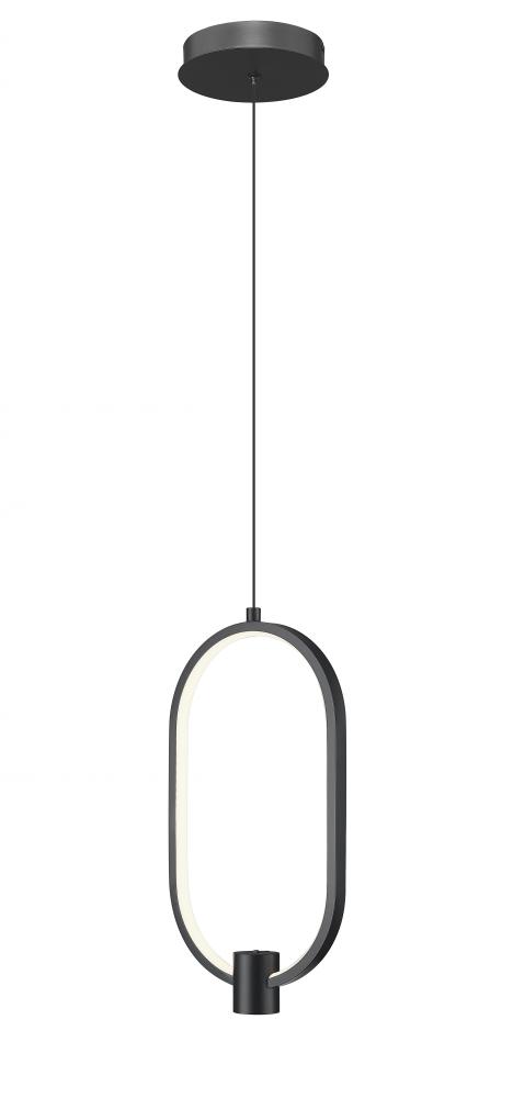 With its playful, casual design and bold matte black aluminum construction, this one-light pendant is an obvious choice for laid-back style. Open metalwork creates an elongated open oval body lined with an acrylic diffuser, as a charming single cylinder accent balances its proportion. This LED light is dimmable to achieve varying levels of illumination.