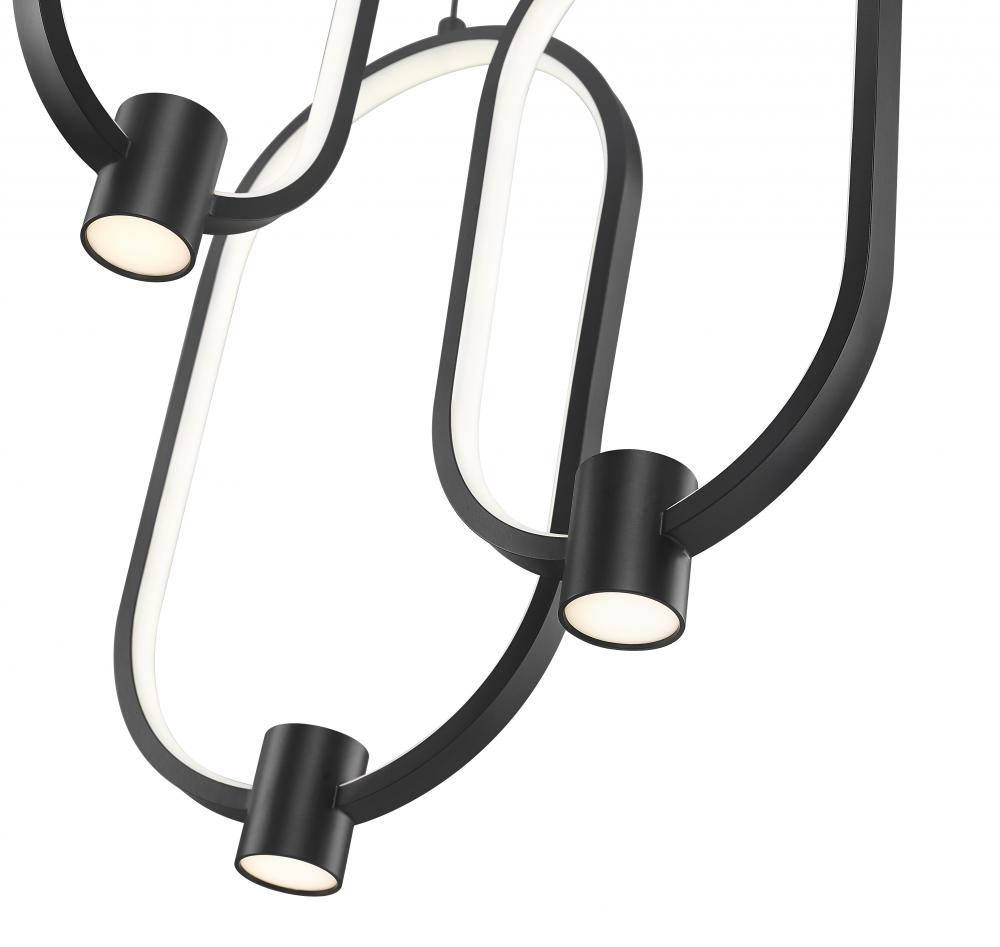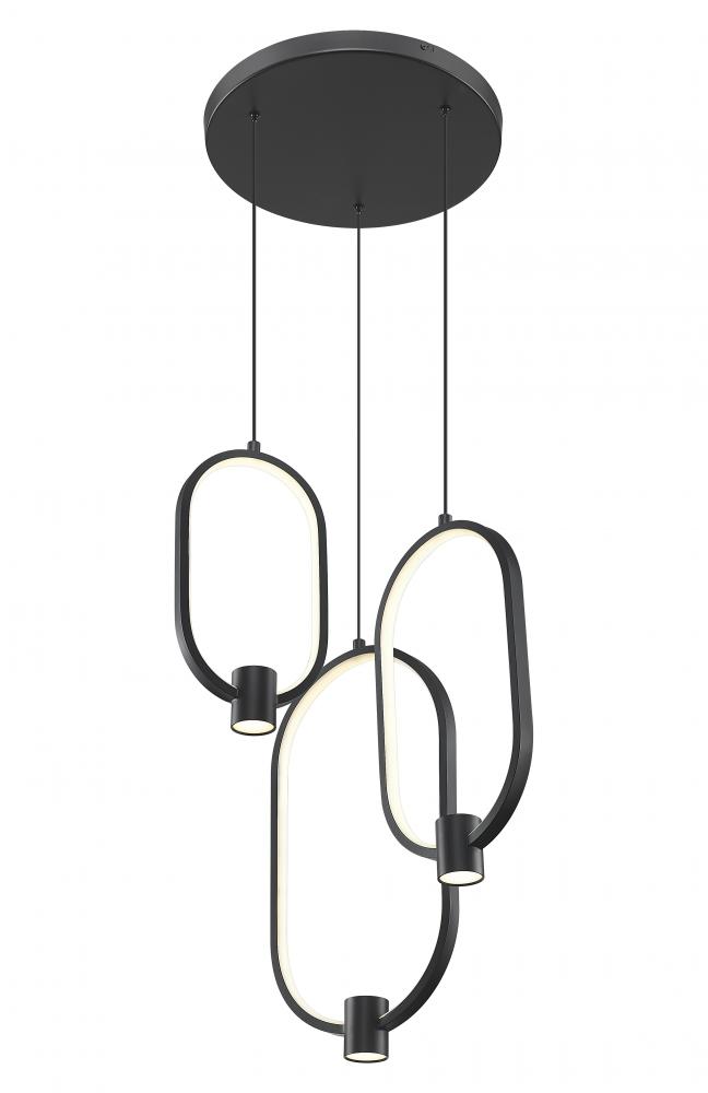 Make a splash in any space with a geometric motif as you illuminate kitchens, bedrooms, and living rooms. This three-light oval LED chandelier delivers the classic open metalwork look with matte black finish aluminum creating suspended oval luminaires with dimmable LED downlights. A playful narrative unfolds in a fixture created for festive, bold style.