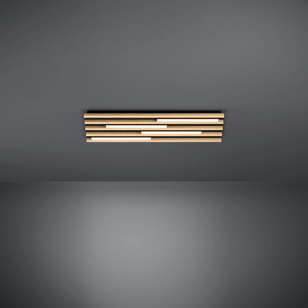 LED Rectangle Ceiling Light w/ Black Metal Body & Oak Veneer Elements