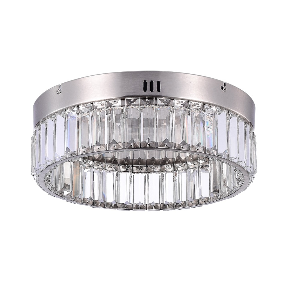 The Stella Collection single tier flushmount features dazzling crystals which are illuminated by bright LED. The frame is finished in a stunning satin nickel. Due to its LED light source it is energy efficient. This model is dimmable and back with a 5 year warranty on the LED.