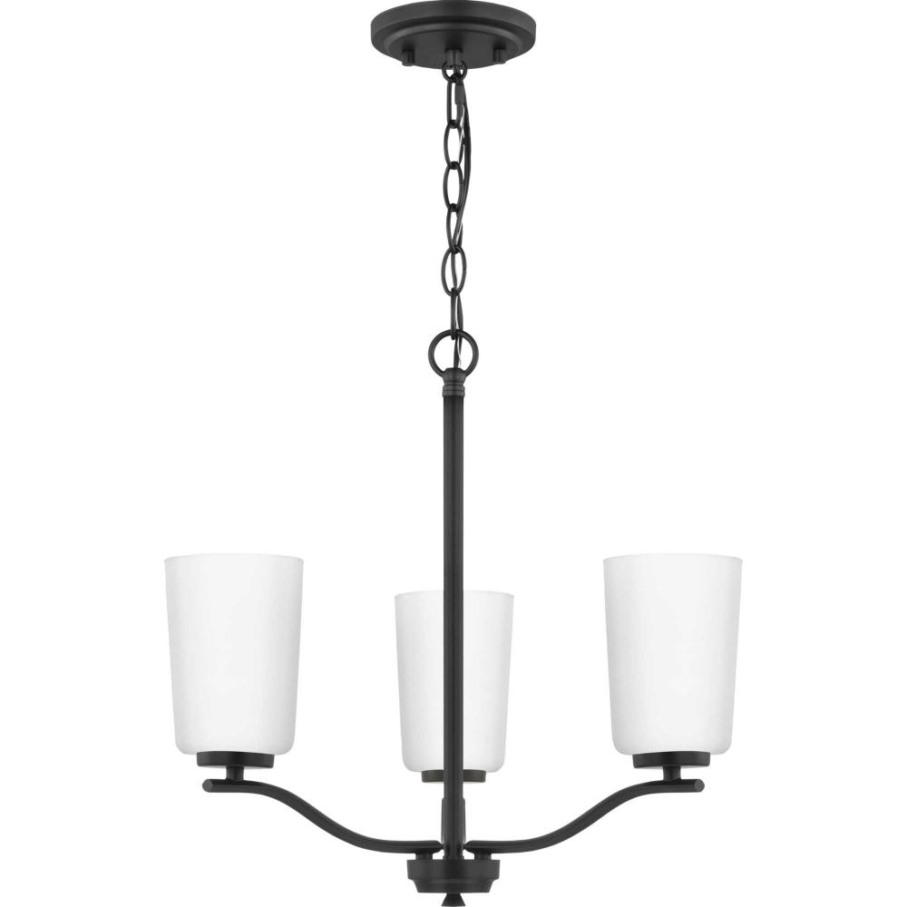 Fundamentally modern but with a traditional twist, the Adley semi-flush convertible chandelier combines etched white glass shades with a curved arms and simple, straight bars finished in matte black. This light is an elegant choice for illuminating kitchens and breakfast nooks in transitional settings and contemporary settings. The fixture has 48 in. of chain to customize it for a variety of ceiling heights and can be used on a sloped ceiling.