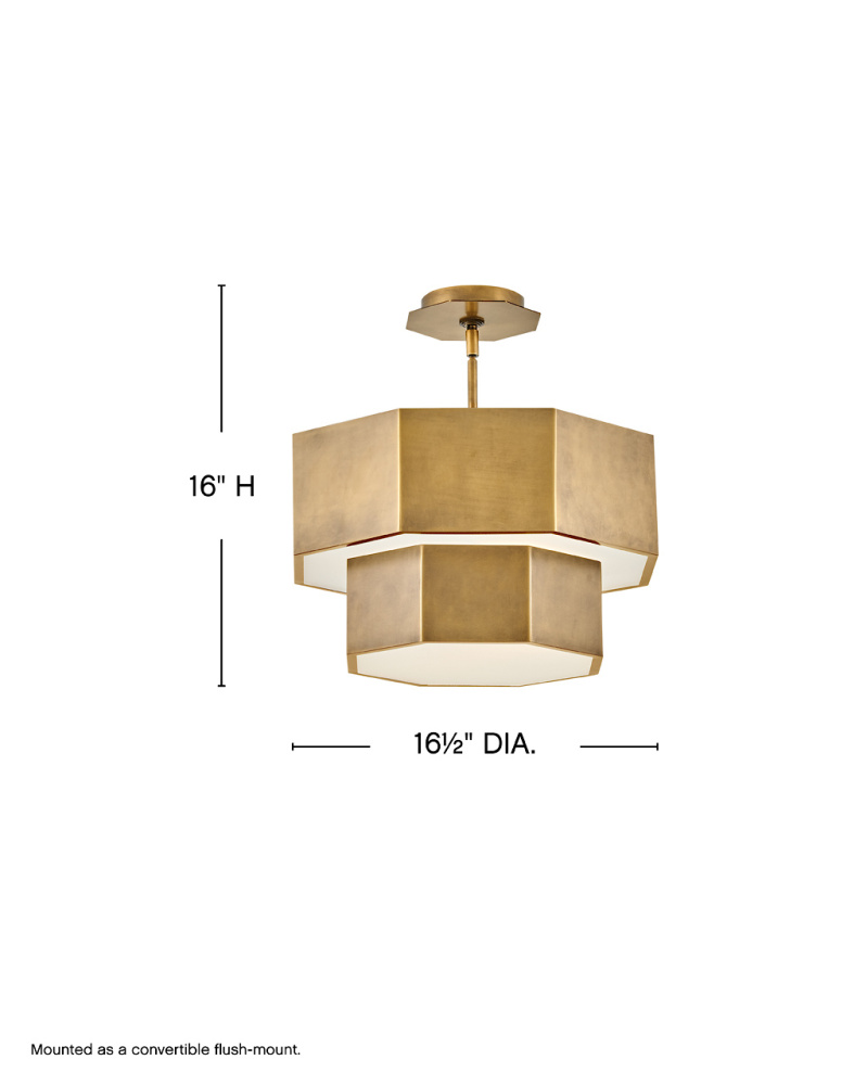 View the many sides of Facet. Interesting angles combine with bold metal features to create an edgy and contemporary profile that is unpretentious yet unforgettable. Hexagonal etched glass is showcased by Heritage Brass or Black Oxide finishes.