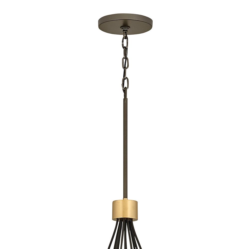 Sleek and chic, Astrid is designed as an airy geometric beauty balanced with robust welded construction. The inner light cluster, uniquely wired from the bottom, appears to float inside the outer cage. The two-tone finish further enhances the layering effect for added depth and dimension.