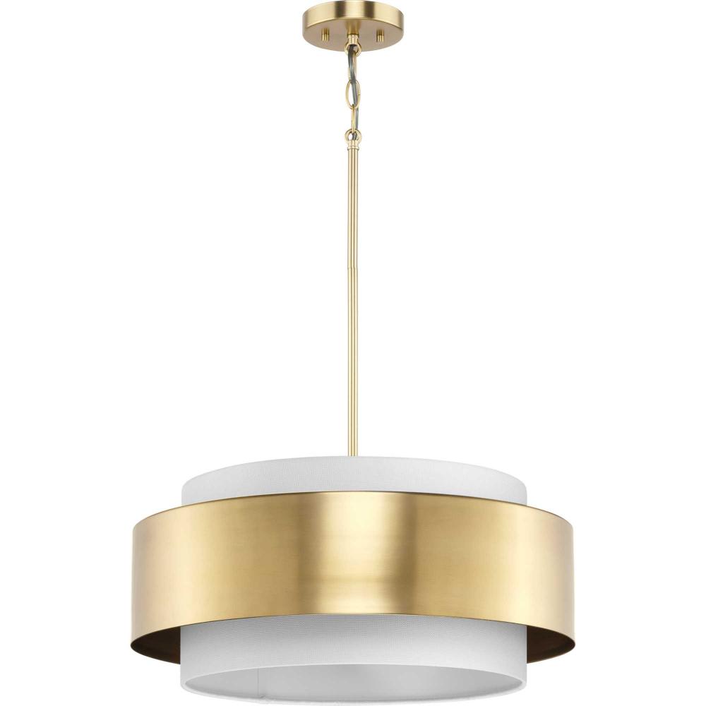 The Silva Collection uses a dramatic contrast of finish and material to present a captivating design. A white linen shade encompassed by a stunning metallic drum coated in a beautiful brushed bronze finish establishes a clean, modern, uplifting statement. This fixture is part of the Progress Lighting Design Series, a lighting collection offering fashionable styles and affordable luxury lighting for the home.